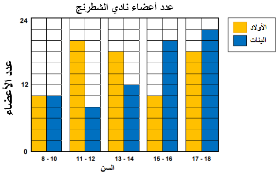 استخدم الرسم البياني بالأعمدة المزدوجة الذي يوضح عدد أعضاء لنادي الشطرنج بالمدرسة للإجابة على السؤال