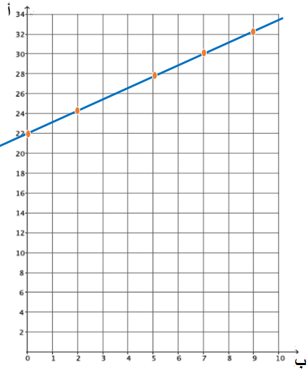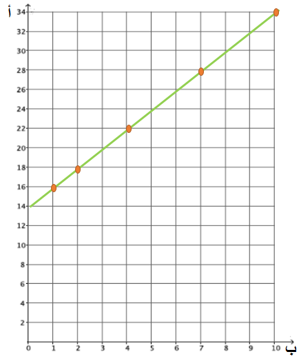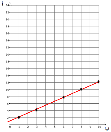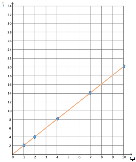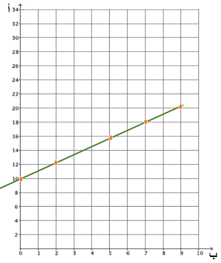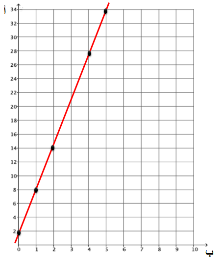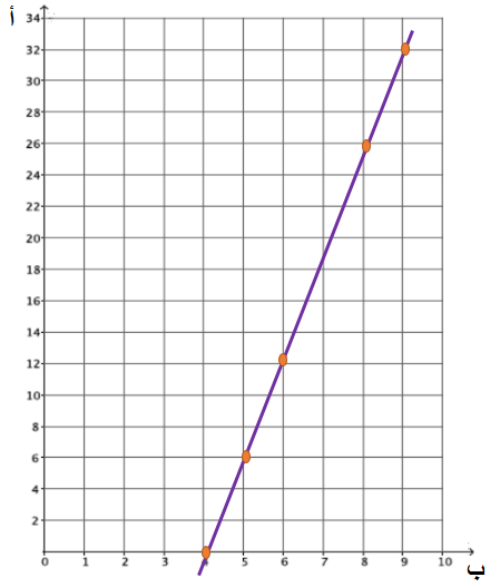 أكمل الجدول أسفله الذي يمثل العلاقة بين متغيرين و الموضحة في الرسم البياني