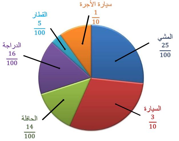 .يعرض المخطط الدائري التالي معلومات حول وسائل النقل التي يستخدمها الطلاب للوصول إلى المدرسة. استخدم البياني الدائري للإجابة على السؤال